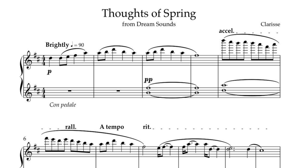 PDF piano score of "Thoughts of Spring" from Dream Sounds