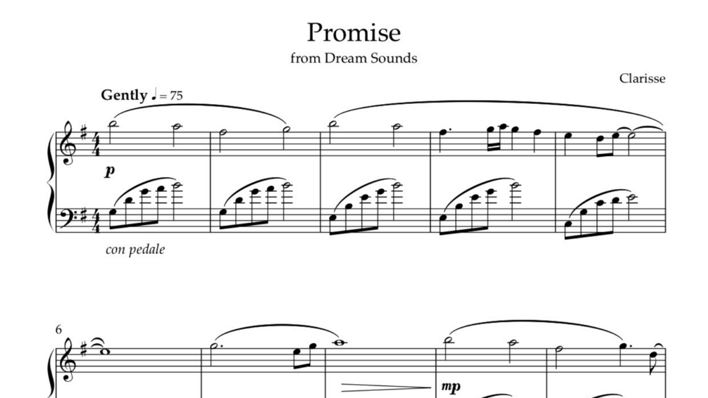 Piano sheet music for "Promise" from Dream Sounds composed by Clarisse